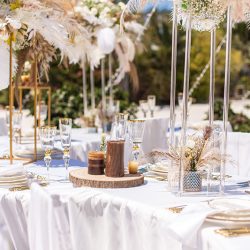 Price for extra center piece decorations for each round table (sitting between 5-8 chairs is): 273.75euros plus vat