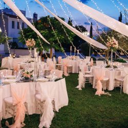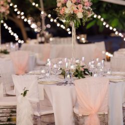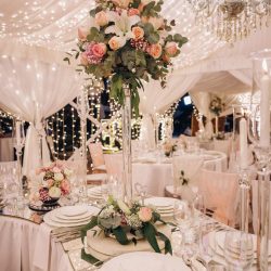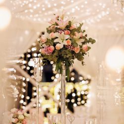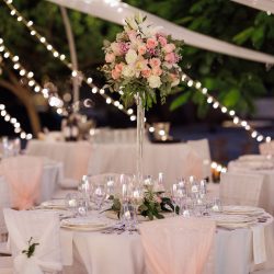 - 2 Banquet tall Fresh flower arrangements which consist of 60 fresh Roses per arrangement with a little greenery (45 Cm diameter)