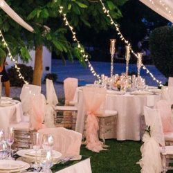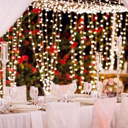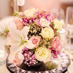 - 2 Banquet low Fresh flower arrangements which consist of 60 fresh Roses per arrangement with a little greenery (45 Cm diameter)