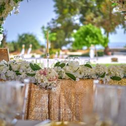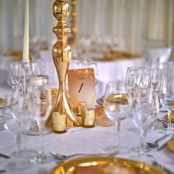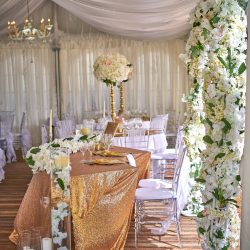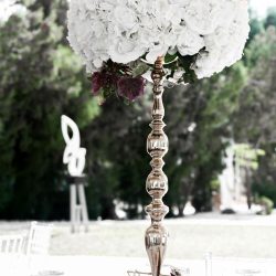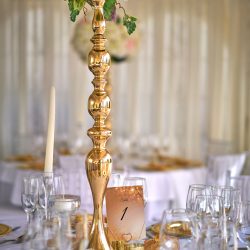 - 4 Tall Gold/Glass Vases approx height 60 cm (for above Banquet flowers)
