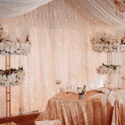 - 6 Meters of silk flower garland for above stands & 200 Ostrich feathers, with 150 Silk roses