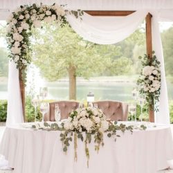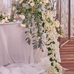 - • 1 large central garland flower arrangement 300cm * 50cm with fresh roses & Greenery
