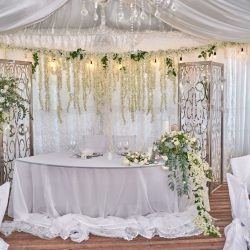 - • 1 Overhead shelf approx. 2.5 meters in length decorated with greenery