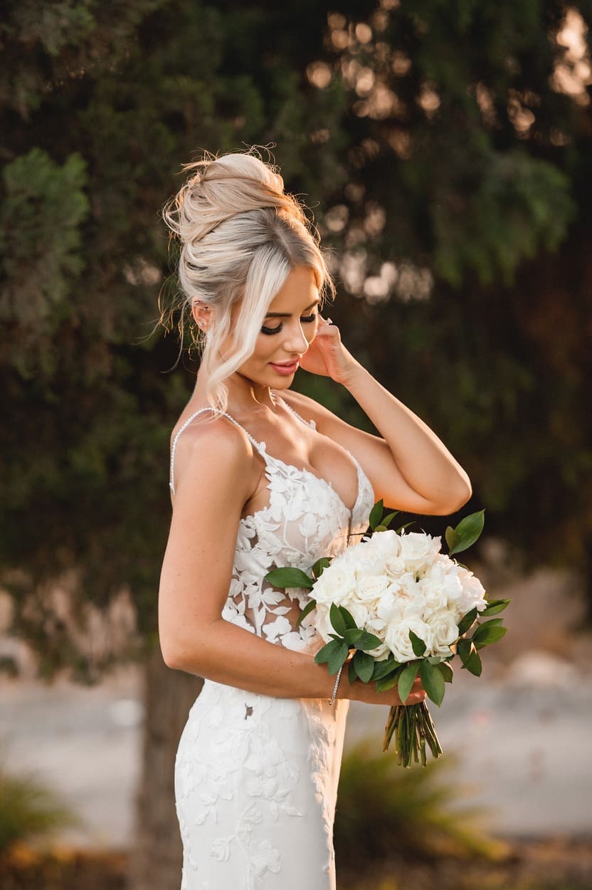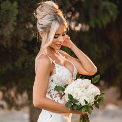 - Bridal Bouquets With (5pcs) of Peonies 0r 3 Stems of Orchids with up to 27 O’Hara Roses and either greenery or Gypsophilia Price 210 Euros plus VAT