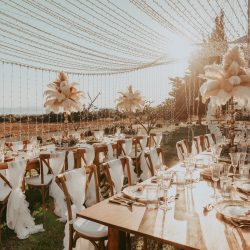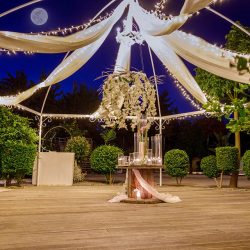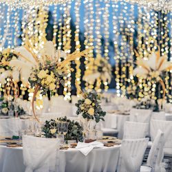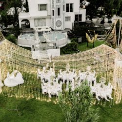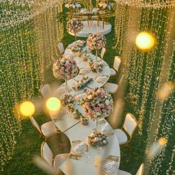 - Crystal curtain behind head table or 20 Candle glass baubles behind head table