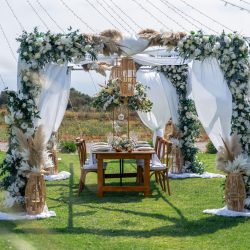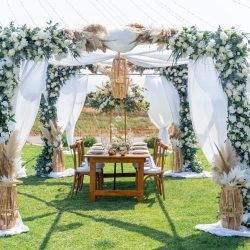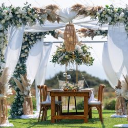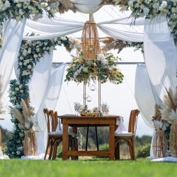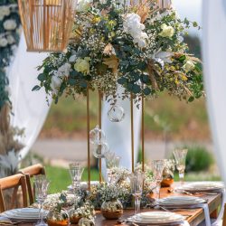 - The ‘Boho Prestige’ Centrepieces will be used on 4 Full wooden tables. 4 Banquet Fresh flower arrangements which consist of 30 fresh flowers per arrangement (60 Cm Diameter) Ostrich Plumes and dried Boho elements