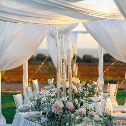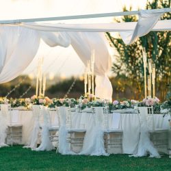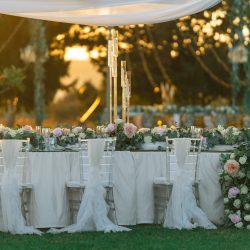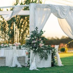 - 4 Full table garland (30Cm height * 40 Cm with and 420 cm in length. This Banquet Fresh flower centre pieces has Approx. a combination of 500 Roses/flowers per table, it is made up of O’Hara roses, Lisianthus rose, Austin rose, Astromeria, Gypsophilia, Eucalyptus.