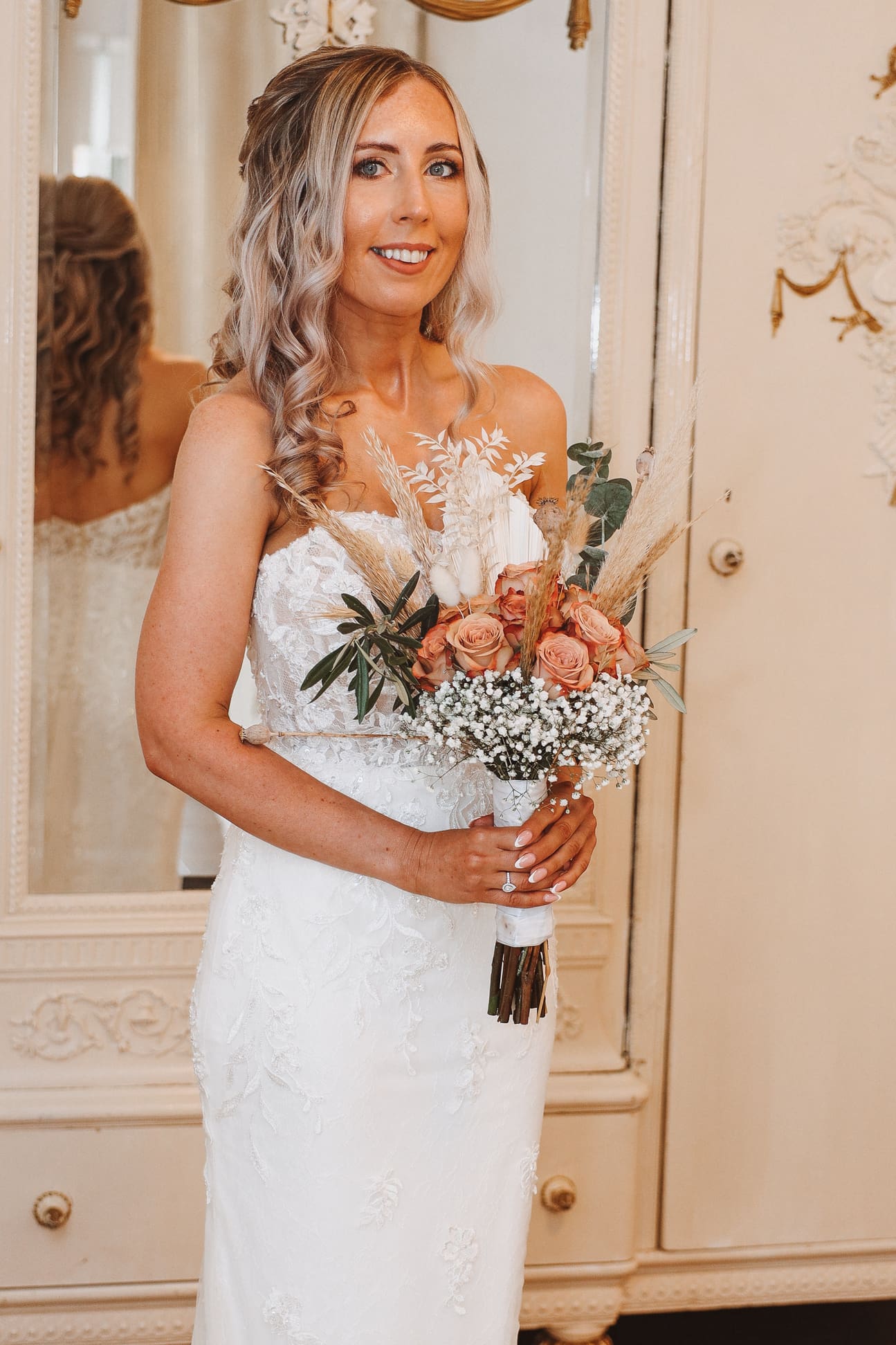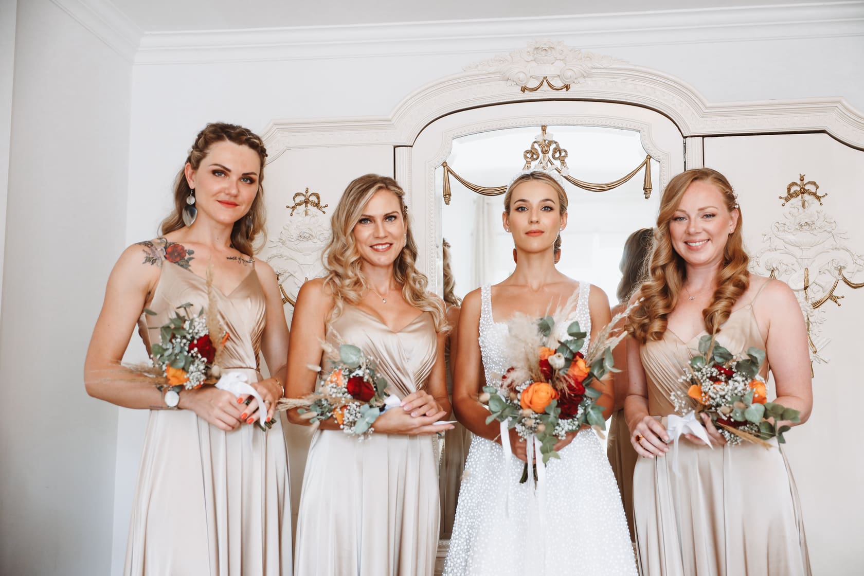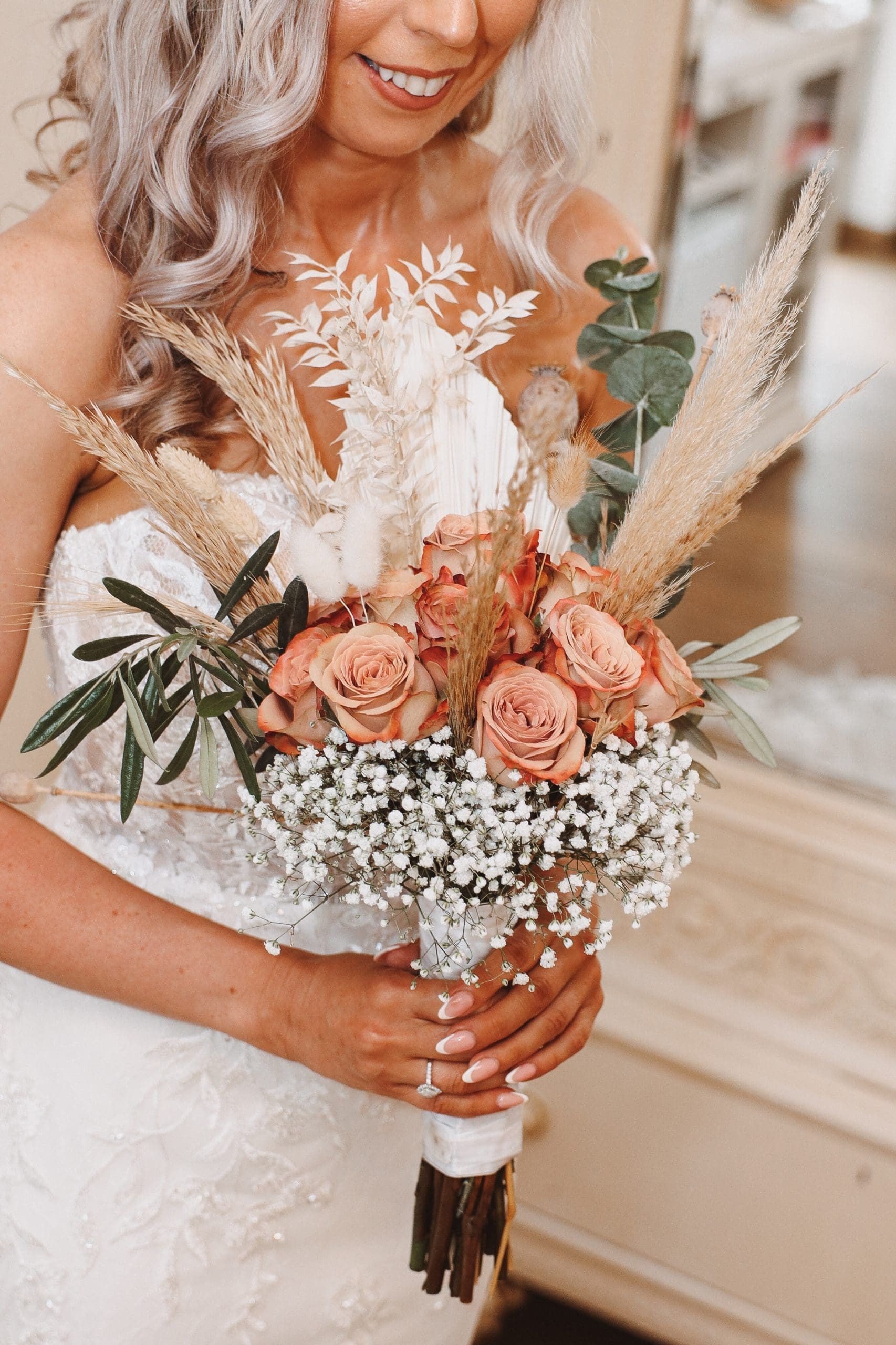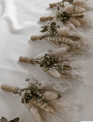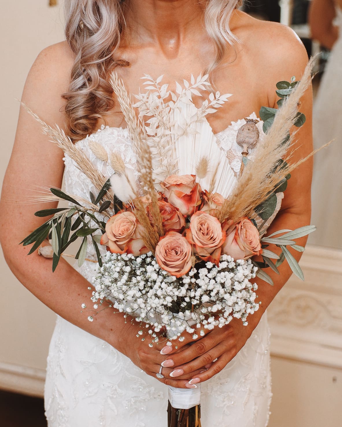 - Bridesmaids posies With (6pcs) O’Hara Roses for our bridal bouquets with Boho aspects and fresh greenery or wild forest greens is 80 Euros plus VAT