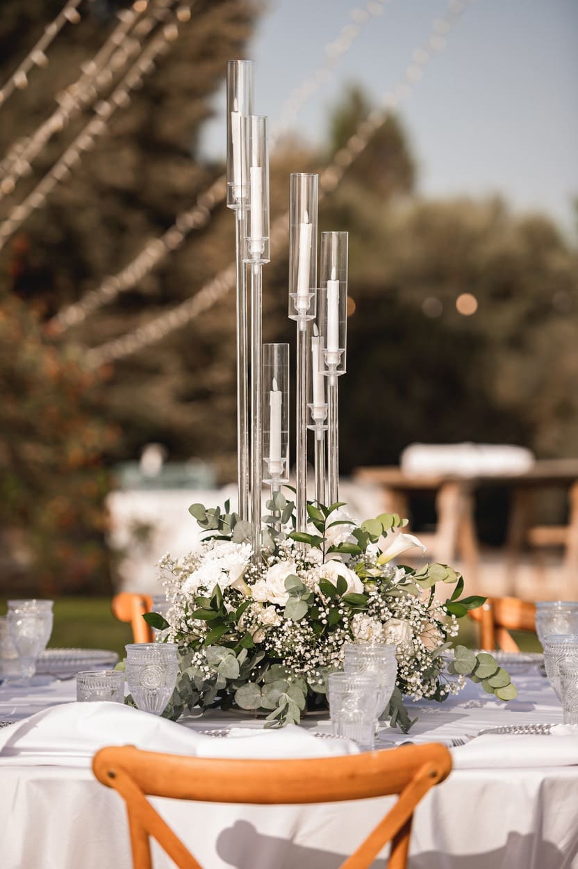 - 4 Banquet Fresh flower arrangements which consist of 10 fresh flowers per arrangement with greenery or boho items (45 Cm Diameter)