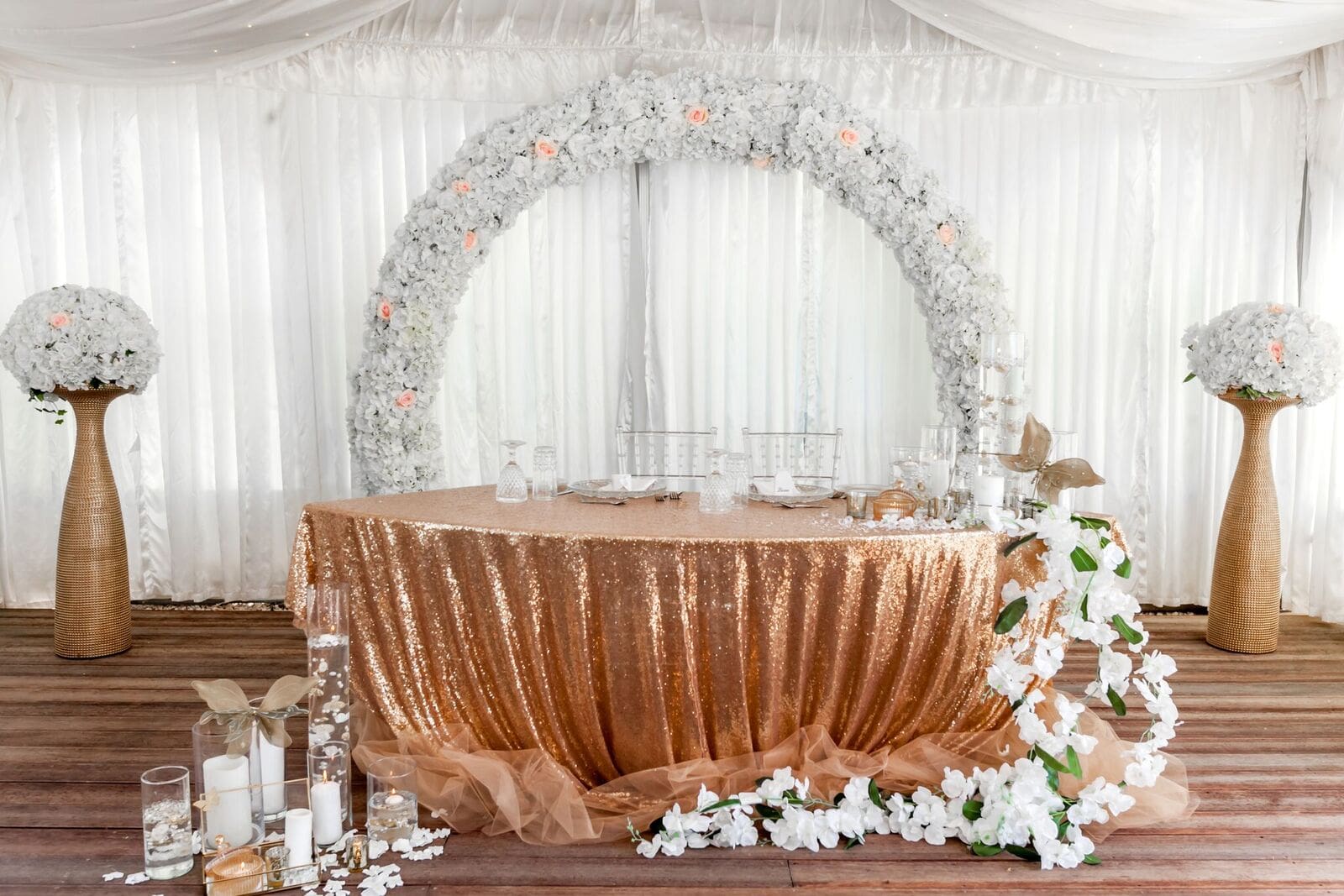 Please note the below price is for 2 people on a Sweetheart table for every additional person please add 25 Euros plus