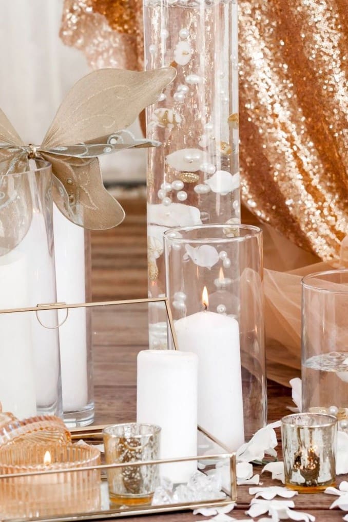 - 2 Small gold boxes with lids & candles